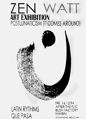 The lunar phase is predominantly a cosmic factor which influences all creatures on the planetoid earth. It has been shown that emotional and intellectual cycles are inclined to vary in accordance with lunar activity (Carrol, L. 1900). When the moon gets wobbly, earthlings also get wobbly. This is due to an anomalous perturbation of the molecular structure of moon rocks.These rocks described by David Bowie at length in his academic treatise, "Ziggy Stardust" are really the reason lunatics exist. At the time of the full moon, that is when the moon is opposite the sun, all the molecules gravitate to one side, the Dark Side of the Moon, this is the reason there is no gravity on the moon - at least this is the scientific hypothesis proffered by Pink Floyd. It is vitally important that an art event such as this LUNATICISM one you are now experiencing, really does, COME AROUND! It comes around and around just like the moon comes around the sun, comes around Sirius, comes around....................... The consequences of taking part in this event, "and make no mistake you are part of it", is that you will never be the same again. How do you think you could be the same again? Everything that happens to you, and something is happening every second of your life, changes you! You can never be the same person one second after another. So if you can never be the same person - Who Are You? When Are You? You Are Not! You do not exist in the sense that you are a permanent solid, stable egocentric humanoid! You exist only as an event! Just like this LUNATICISM event, you are the same as this event, therefore if you are anything at all you are a screaming, fucking lunatic!!!!!!!!!!!!!!!!!!!!!!!lunatic!!!!!!!!!!!!!!!!!!!!!!!!!lunatic!!!!!!!!!!!!!!!!!!!!!!!lunatic!!!!!!!!!!!!!!!!!!!! DO-IT YOURSELF PSYCHIATRY MANUAL PAGE 679 [by Rob] |